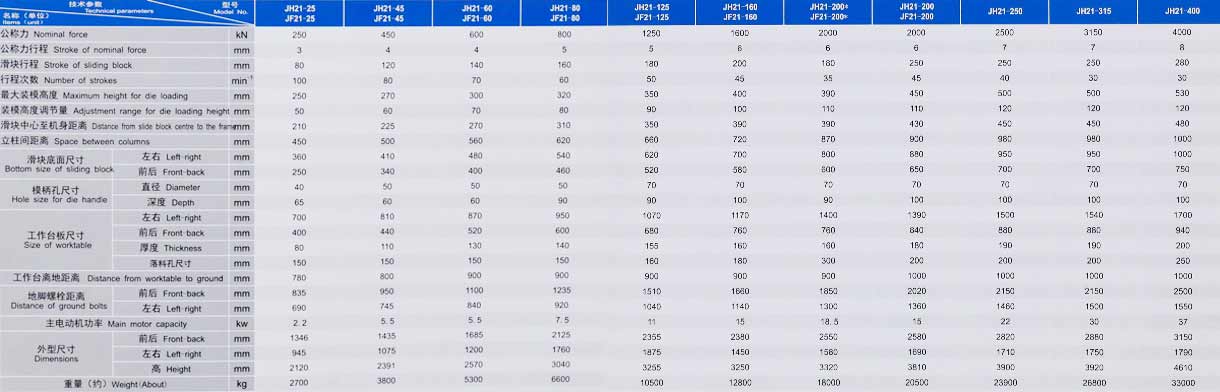 JH21采用液壓過載保護裝置,JF21采用鋼性保險器保護裝置,防止使用超載對機床造成損壞;