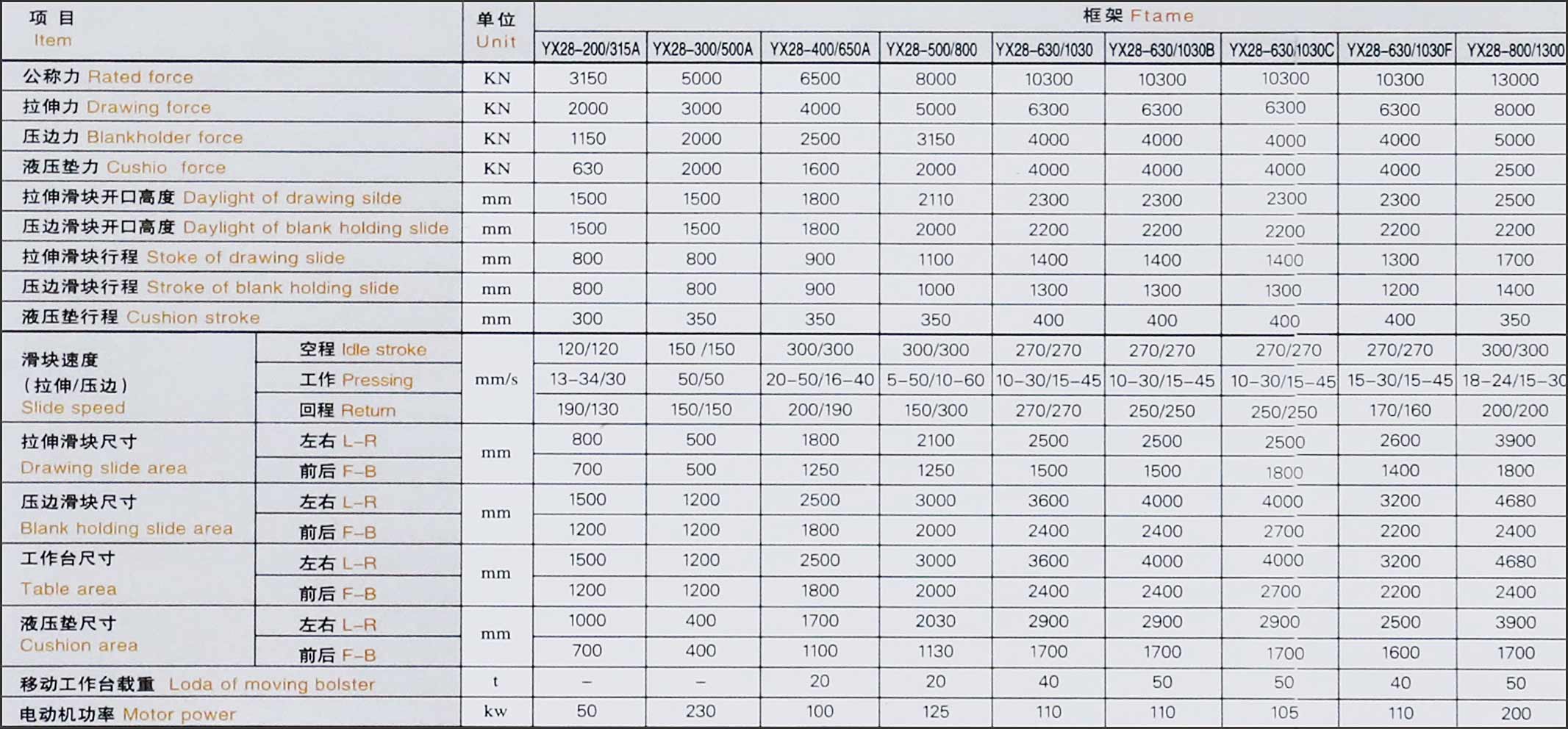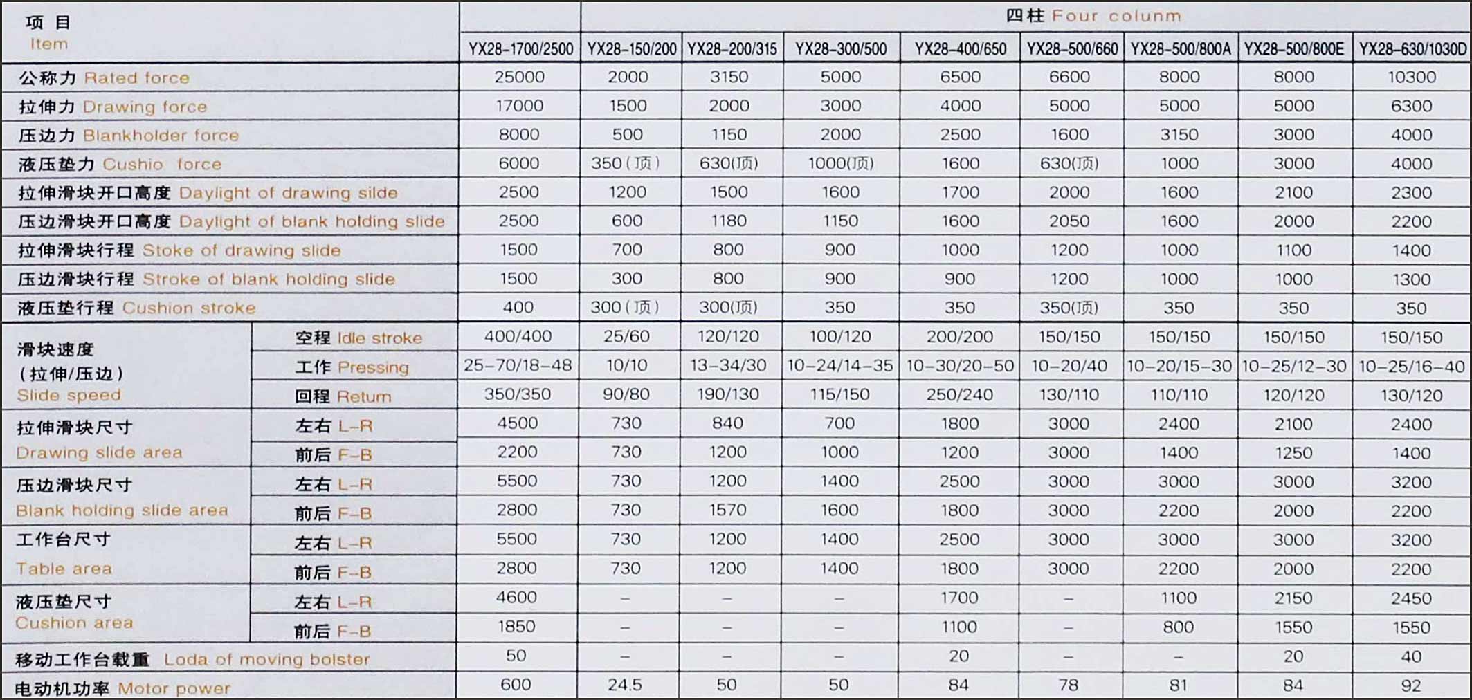 YX28系列雙動(dòng)薄板拉伸液壓機(jī)
